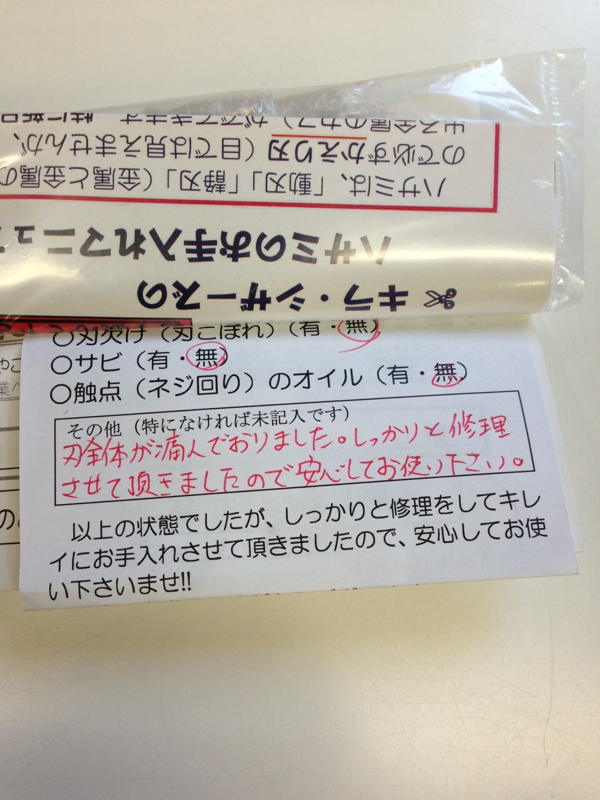 あなたの大事なシザーをお預かりして、大事にお仕上げ致します。